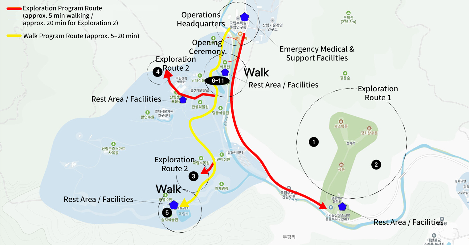 | 13:30 ~ 13:36 | Program Overview & Bioblitz Introduction | Korea National Arboretum | Outdoor garden path | |